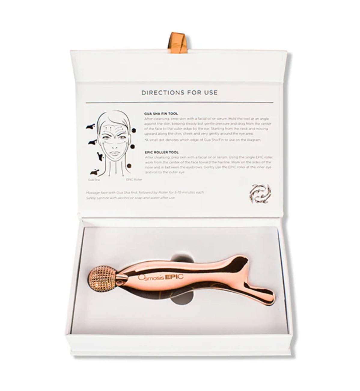 360-degree roller that gently glides over facial contours creating micro-channels in a safe zone, featuring hundreds of mini-pyramids that penetrate just beyond your skin's lipid barrier.